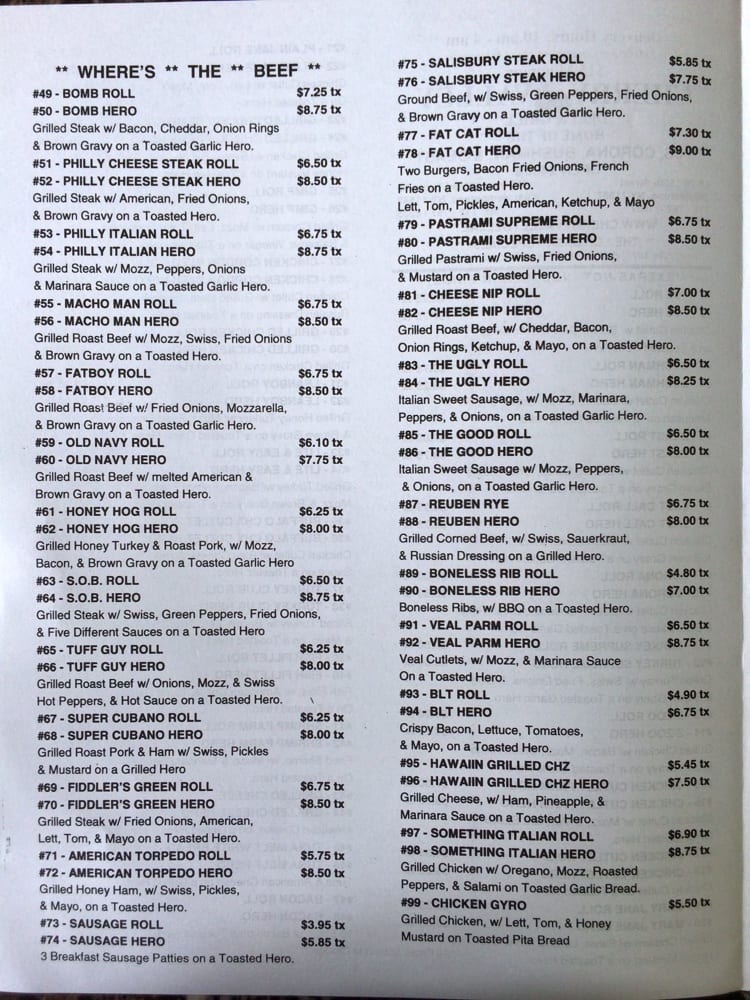 Ground beef, with swiss, green peppers, fried onions, and brown gravy on a toasted garlic roll.